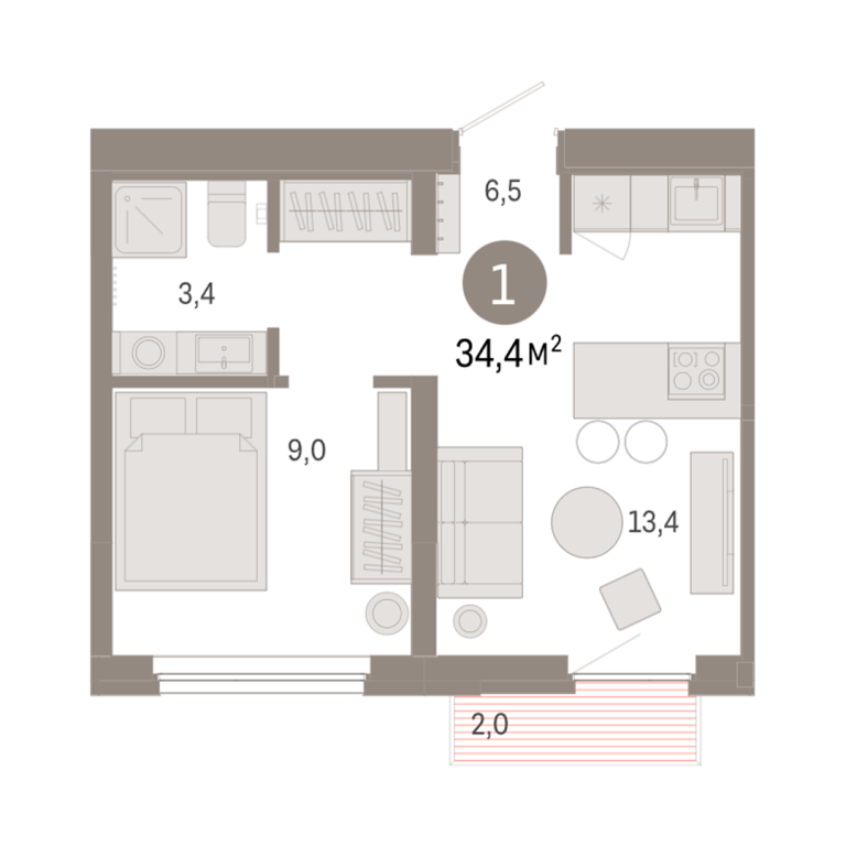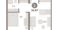 | Общая площадь: | 34.4 м2 |