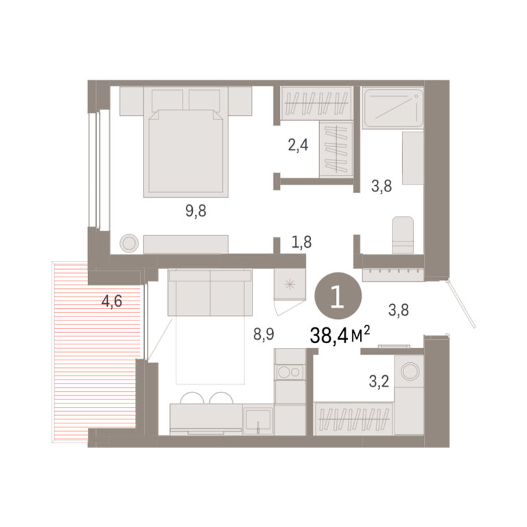 | Общая площадь: | 38.4 м2 |