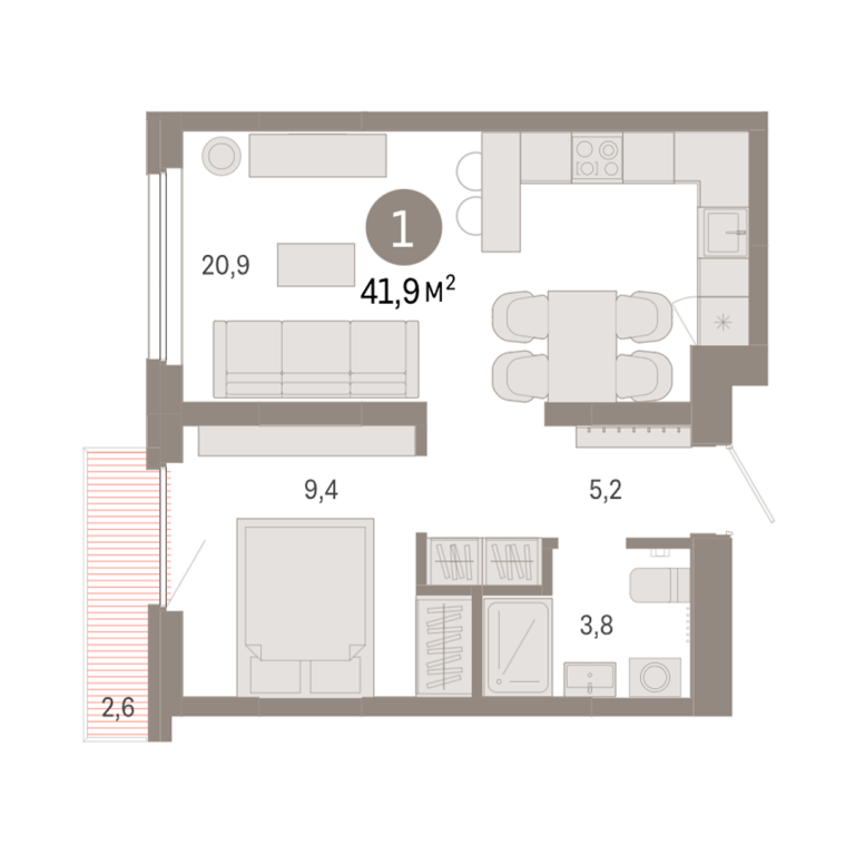 | Общая площадь: | 41.9 м2 |