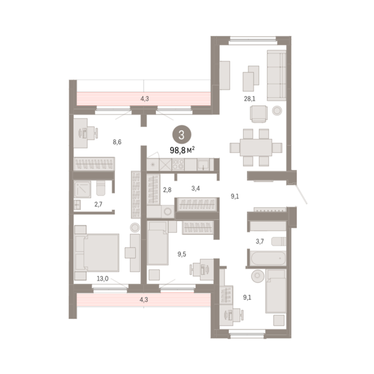 | Общая площадь: | 98.8 м2 |