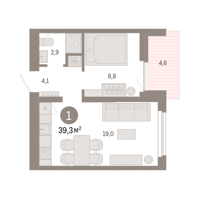 | Общая площадь: | 39.3 м2 |