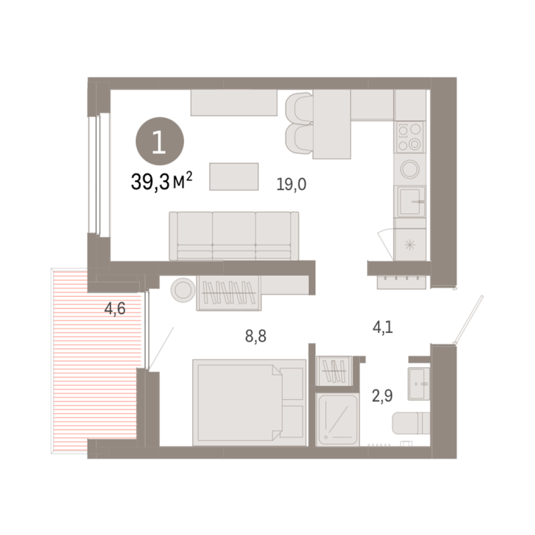 | Общая площадь: | 39.3 м2 |