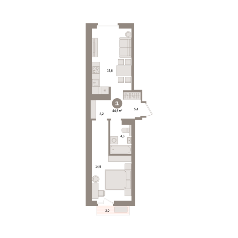 | Общая площадь: | 44.6 м2 |