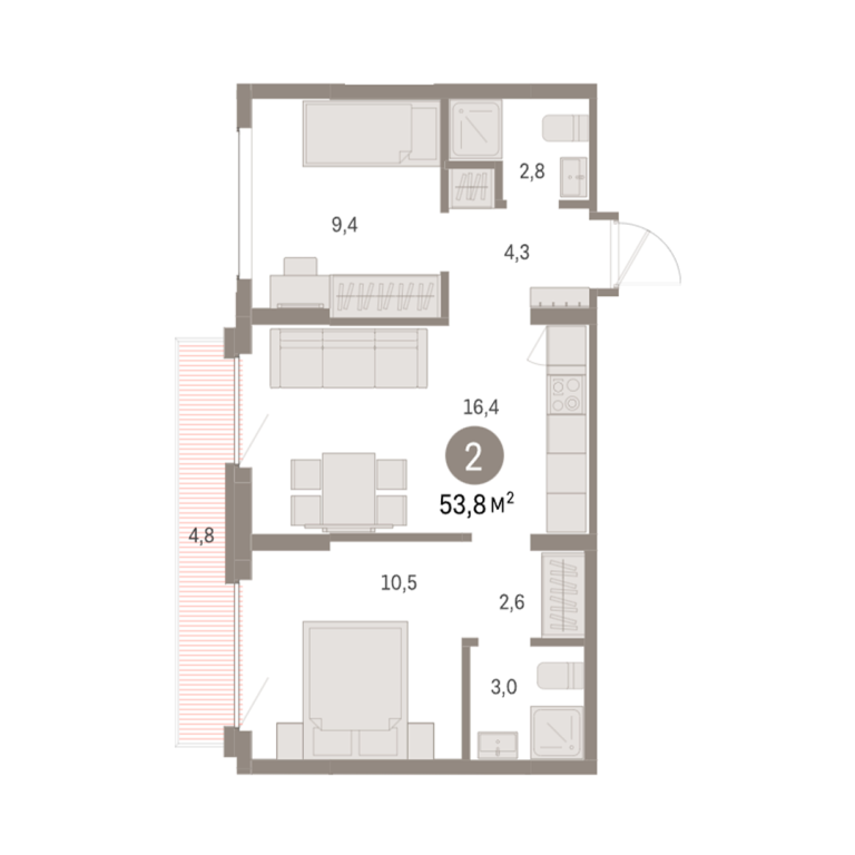 | Общая площадь: | 53.8 м2 |