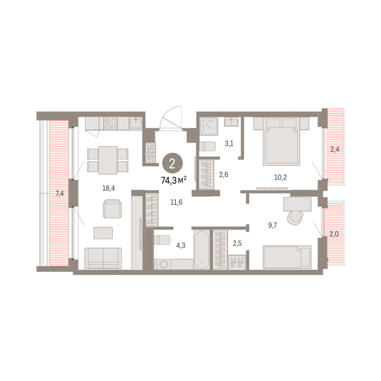 | Общая площадь: | 74.3 м2 |