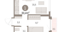 | Общая площадь: | 33.4 м2 |