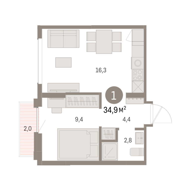 | Общая площадь: | 34.9 м2 |