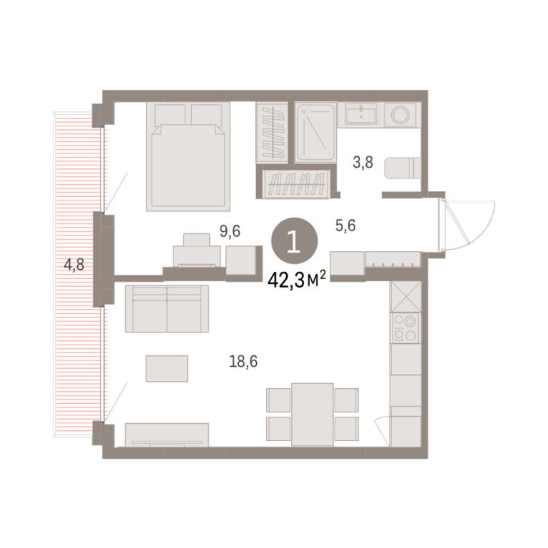| Общая площадь: | 42.3 м2 |