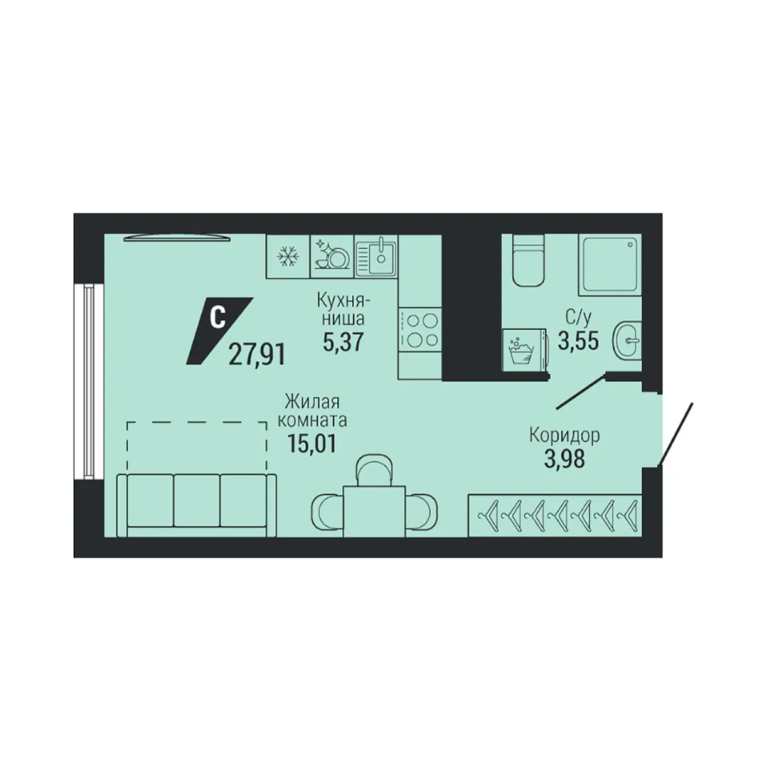 | Тип квартиры: | Студии |