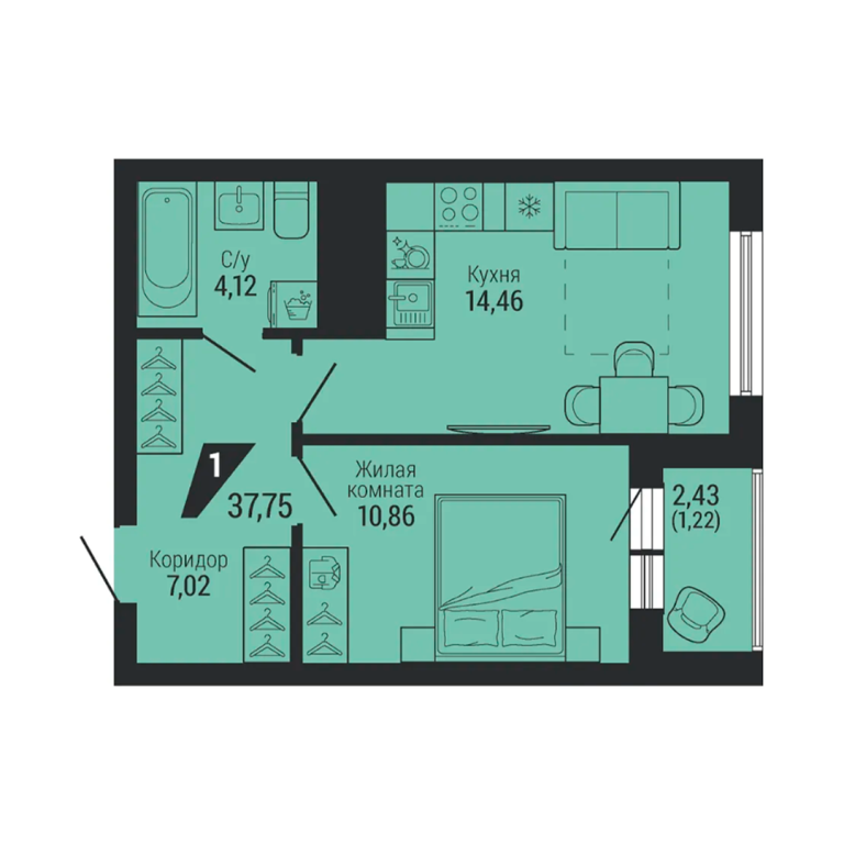 | Тип квартиры: | 1-комнатные |