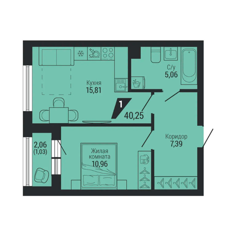 | Общая площадь: | 40.25 м2 |