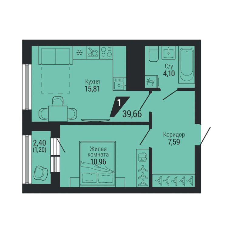 | Тип квартиры: | 1-комнатные |