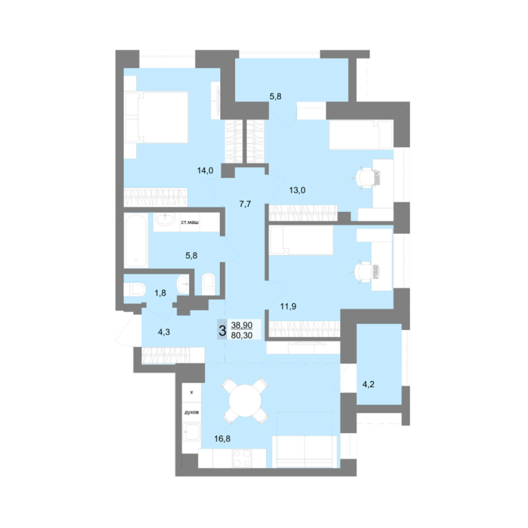 | Общая площадь: | 79.9 м2 |