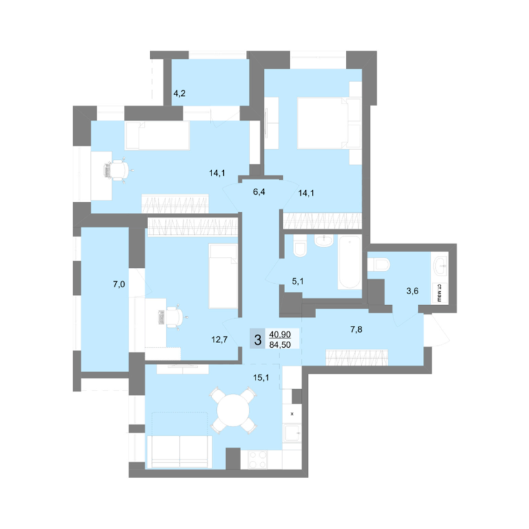 - 59.1 м2