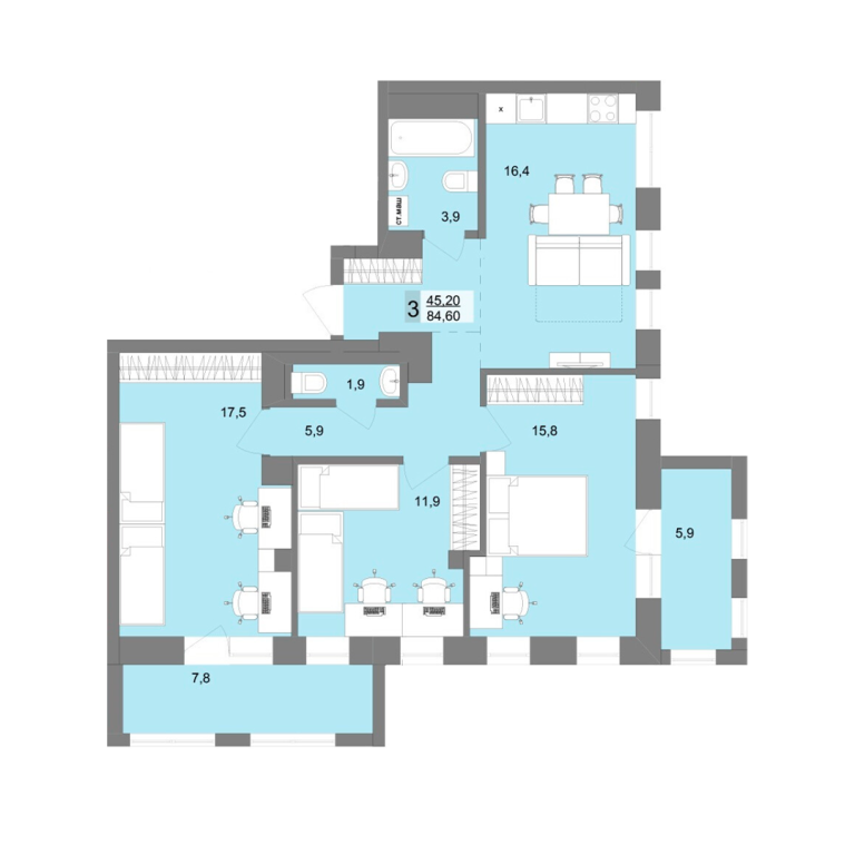 | Общая площадь: | 85.1 м2 |