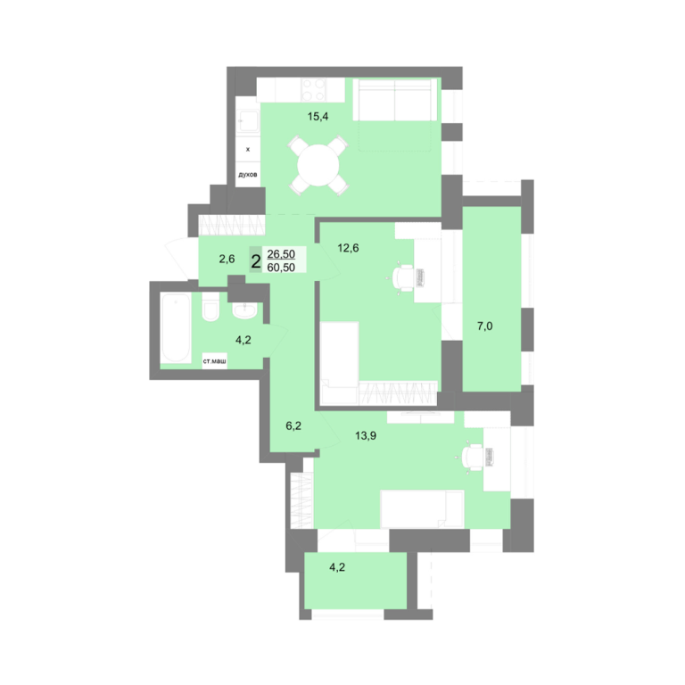 | Общая площадь: | 60.5 м2 |