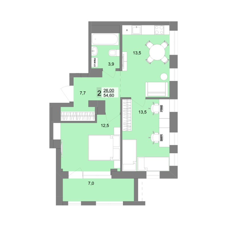| Общая площадь: | 55.7 м2 |