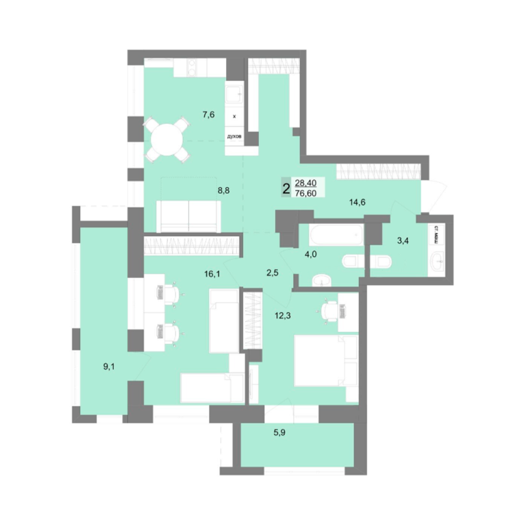 | Общая площадь: | 76.7 м2 |