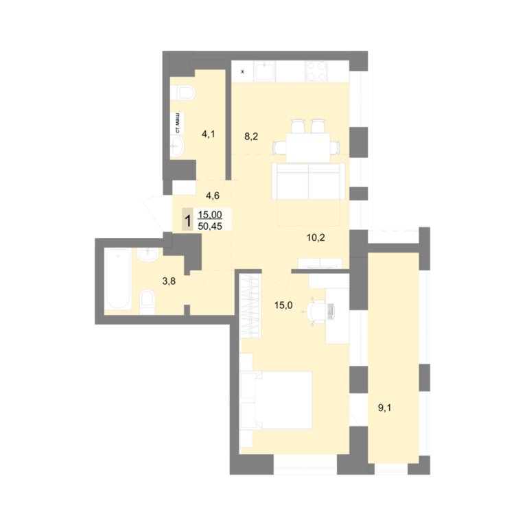 | Общая площадь: | 50.6 м2 |