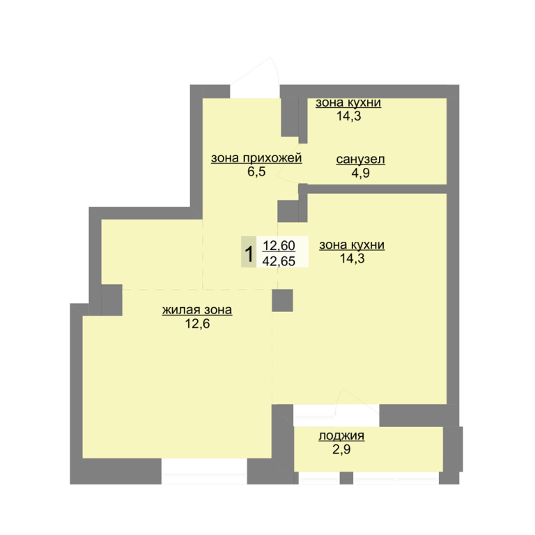 | Общая площадь: | 42.8 м2 |
