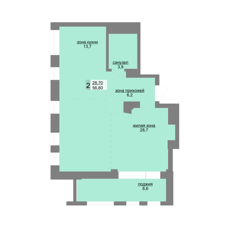 | Общая площадь: | 57.5 м2 |