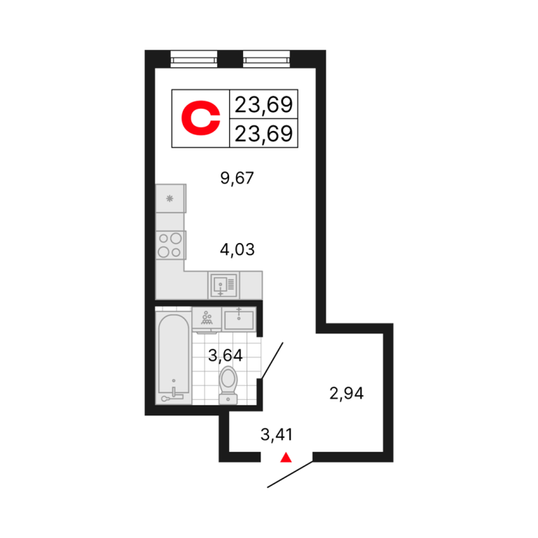 | Общая площадь: | 23.69 м2 |