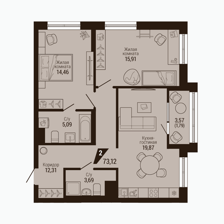 | Общая площадь: | 73.12 м2 |