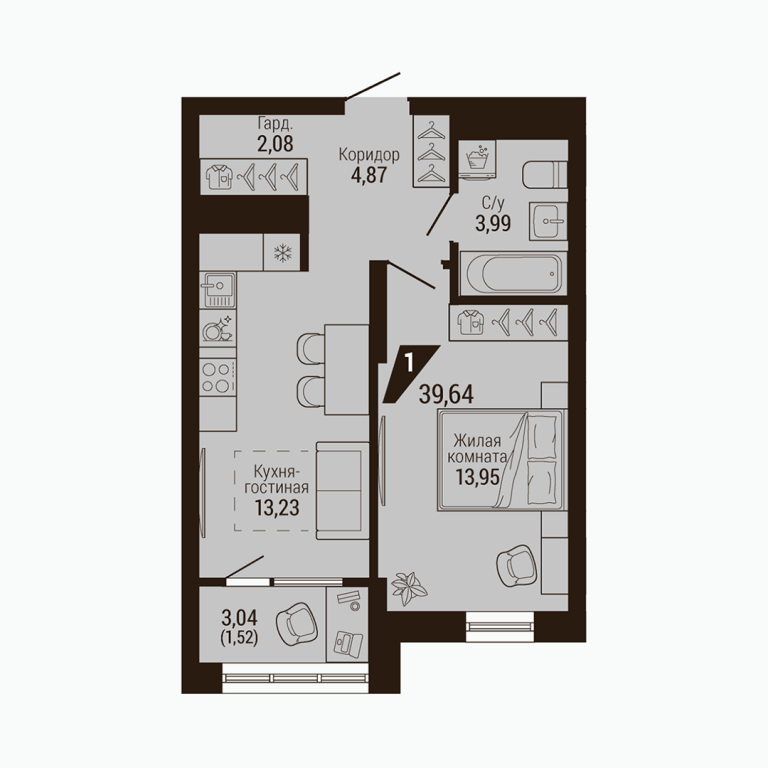 | Общая площадь: | 39.64 м2 |