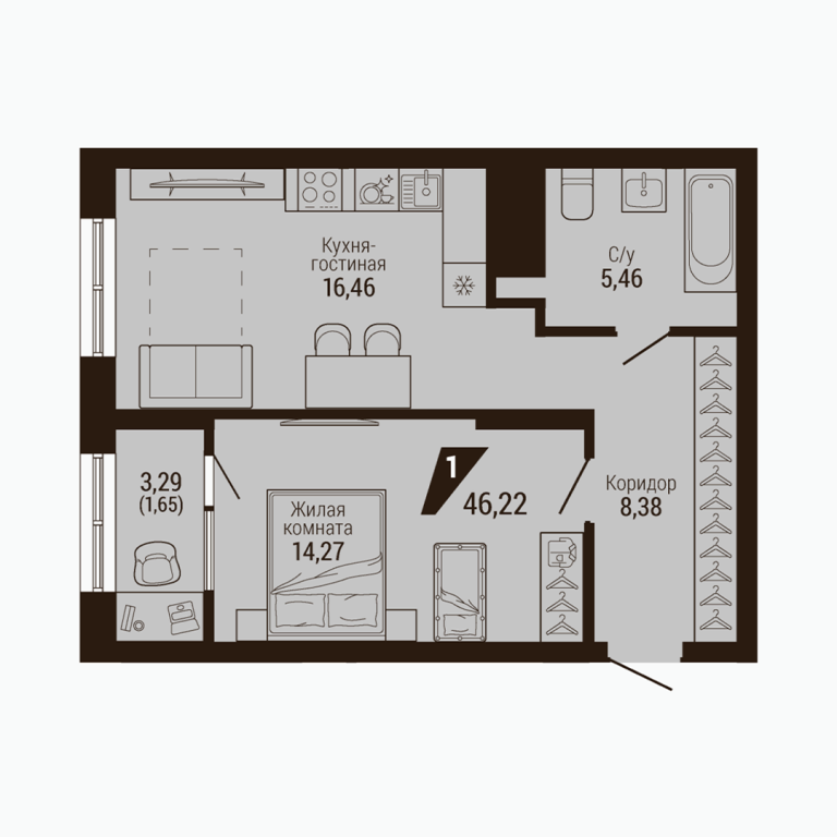 | Общая площадь: | 46.22 м2 |