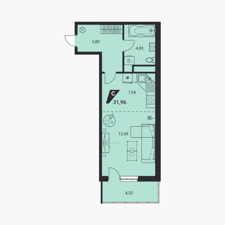 | Общая площадь: | 31.96 м2 |