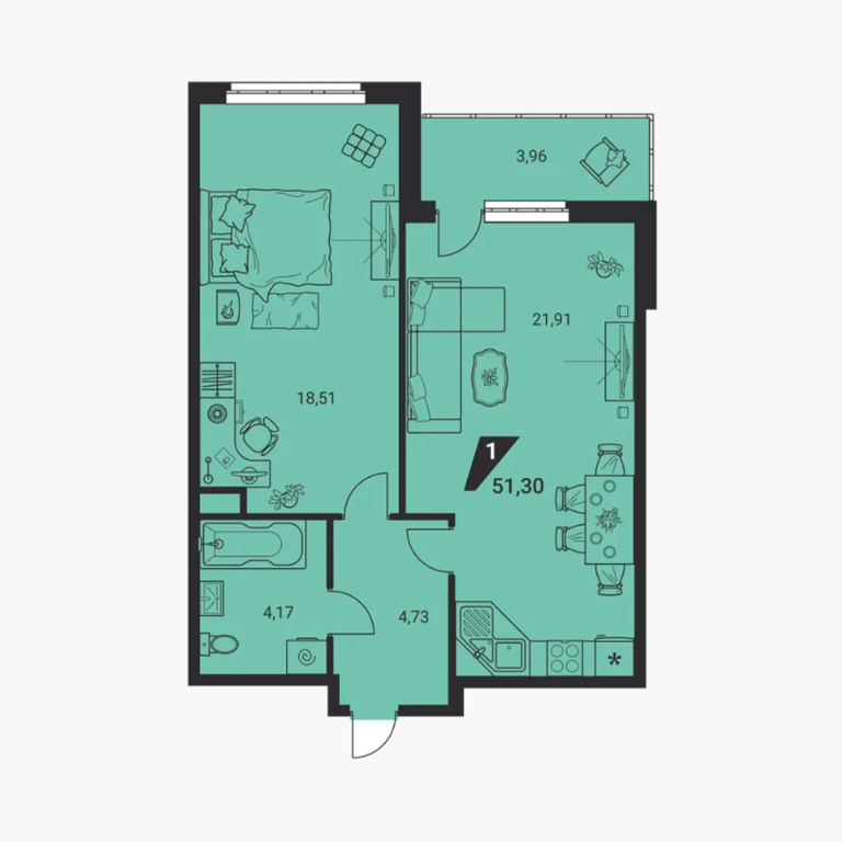 | Общая площадь: | 51.69 м2 |