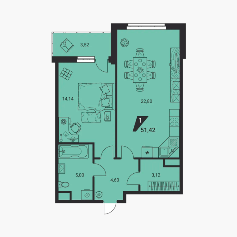 | Общая площадь: | 51.42 м2 |