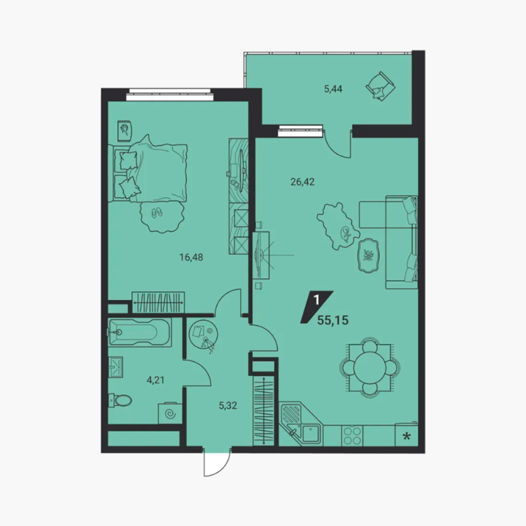 | Общая площадь: | 55.15 м2 |