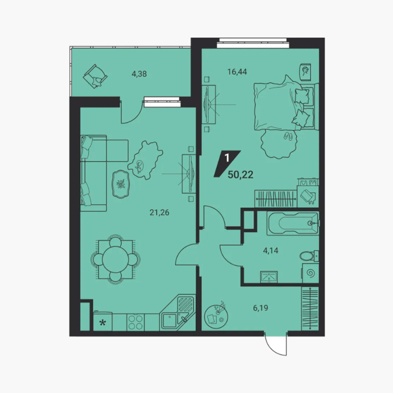 | Тип квартиры: | 1-комнатные |