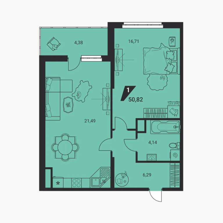 | Общая площадь: | 50.82 м2 |