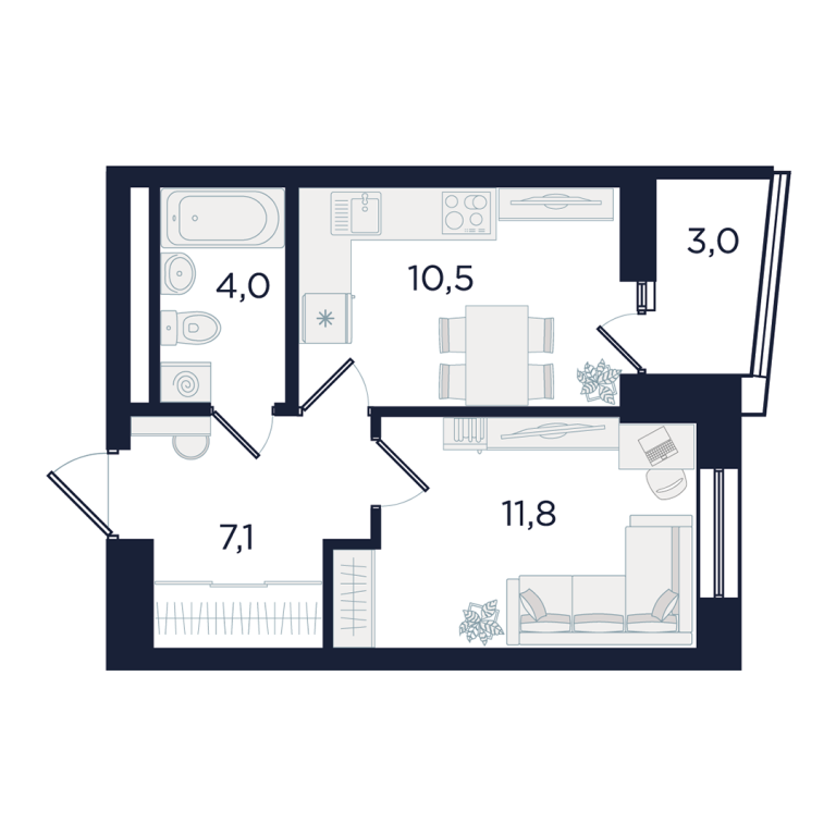 | Описание: | Однокомнатная квартира с отделкой под чистовую: