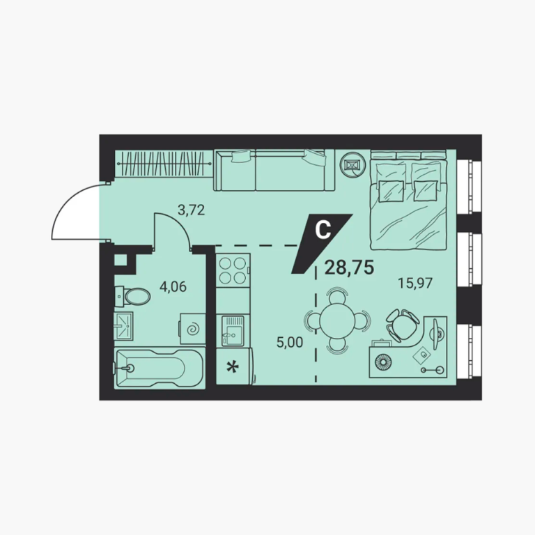 | Общая площадь: | 28.75 м2 |