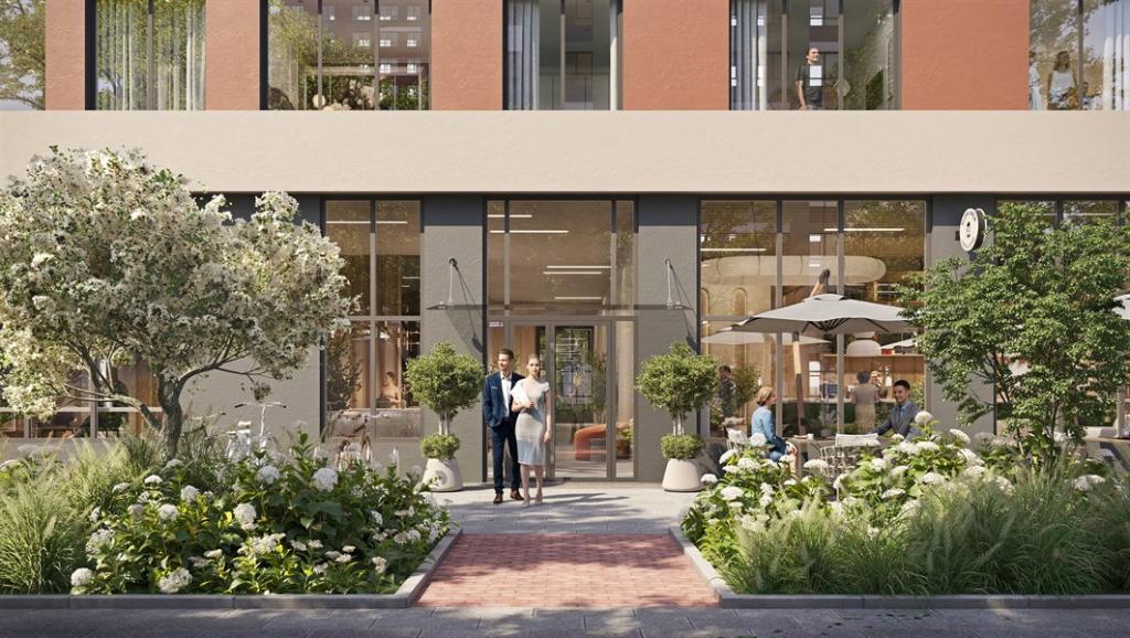 Двор с ландшафтным озеленением разделен на три зоны. Для детей – игровые площадки с меловыми досками и уличными шахматами, для взрослых – лаунж-зона с креслами и столиками для отдыха, для спортсменов – воркаут-площадка. На первом этаже – лобби-клуб с игровыми комнатами, залом для йоги, коворкингом и мини-кинотеатром, колясочные и велосипедные помещения.
