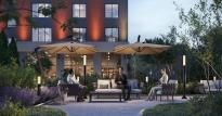 Двор с ландшафтным озеленением разделен на три зоны. Для детей – игровые площадки с меловыми досками и уличными шахматами, для взрослых – лаунж-зона с креслами и столиками для отдыха, для спортсменов – воркаут-площадка. На первом этаже – лобби-клуб с игровыми комнатами, залом для йоги, коворкингом и мини-кинотеатром, колясочные и велосипедные помещения.