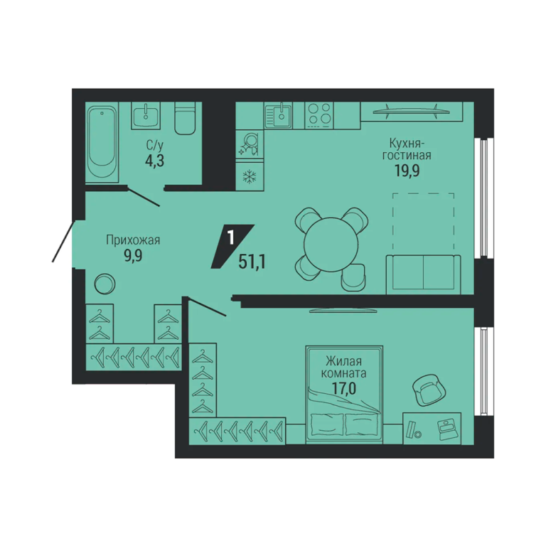 1-комн. квартира в ЖК «К100 на Космонавтов, 100»