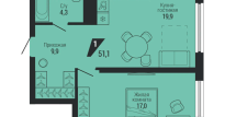• Общая площадь: 51.1 м2
