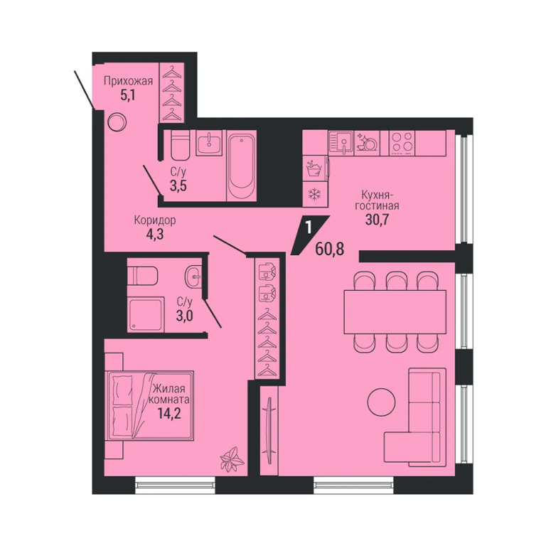 1-комн. квартира в ЖК «К100 на Космонавтов, 100»