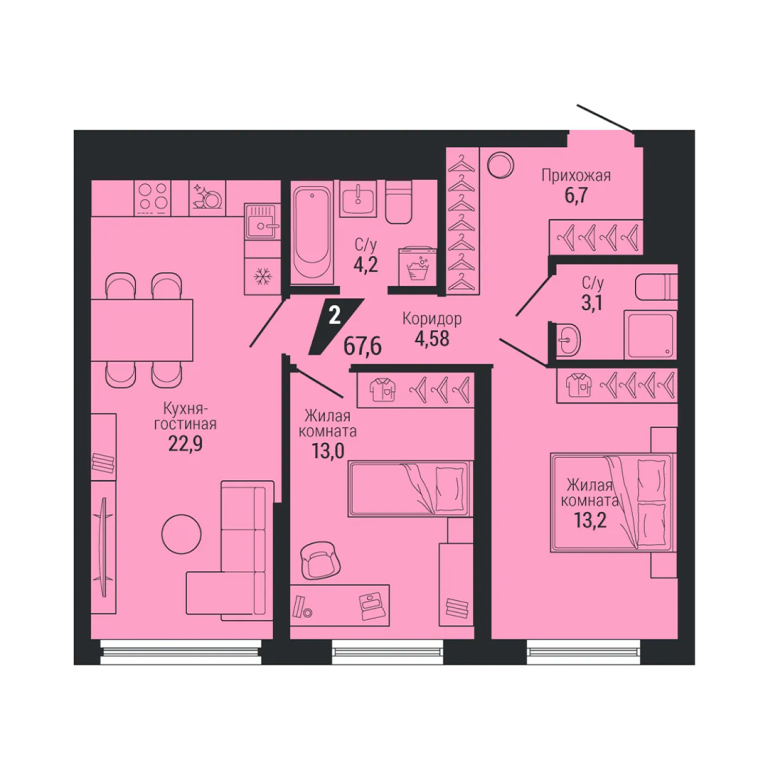 2-комн. квартира в ЖК «К100 на Космонавтов, 100»