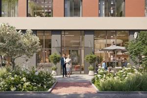 Двор с ландшафтным озеленением разделен на три зоны. Для детей – игровые площадки с меловыми досками и уличными шахматами, для взрослых – лаунж-зона с креслами и столиками для отдыха, для спортсменов – воркаут-площадка. На первом этаже – лобби-клуб с игровыми комнатами, залом для йоги, коворкингом и мини-кинотеатром, колясочные и велосипедные помещения.