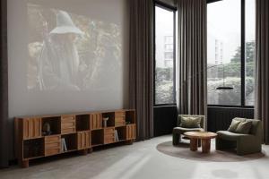 Двор с ландшафтным озеленением разделен на три зоны. Для детей – игровые площадки с меловыми досками и уличными шахматами, для взрослых – лаунж-зона с креслами и столиками для отдыха, для спортсменов – воркаут-площадка. На первом этаже – лобби-клуб с игровыми комнатами, залом для йоги, коворкингом и мини-кинотеатром, колясочные и велосипедные помещения.
