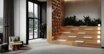 Двор с ландшафтным озеленением разделен на три зоны. Для детей – игровые площадки с меловыми досками и уличными шахматами, для взрослых – лаунж-зона с креслами и столиками для отдыха, для спортсменов – воркаут-площадка. На первом этаже – лобби-клуб с игровыми комнатами, залом для йоги, коворкингом и мини-кинотеатром, колясочные и велосипедные помещения.