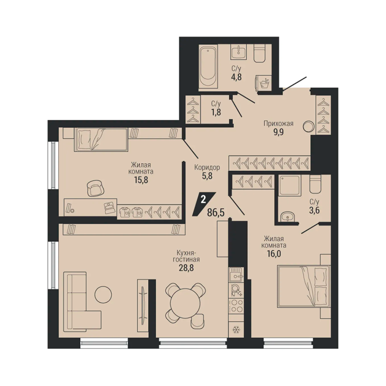 2-комн. квартира в ЖК «К100 на Космонавтов, 100»