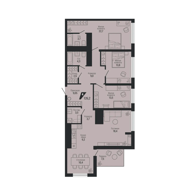 • Общая площадь: 126.2 м2