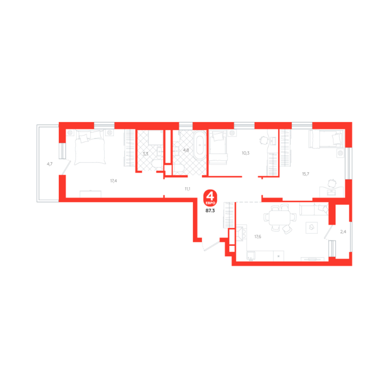 | Общая площадь: | 87.3 м2 |