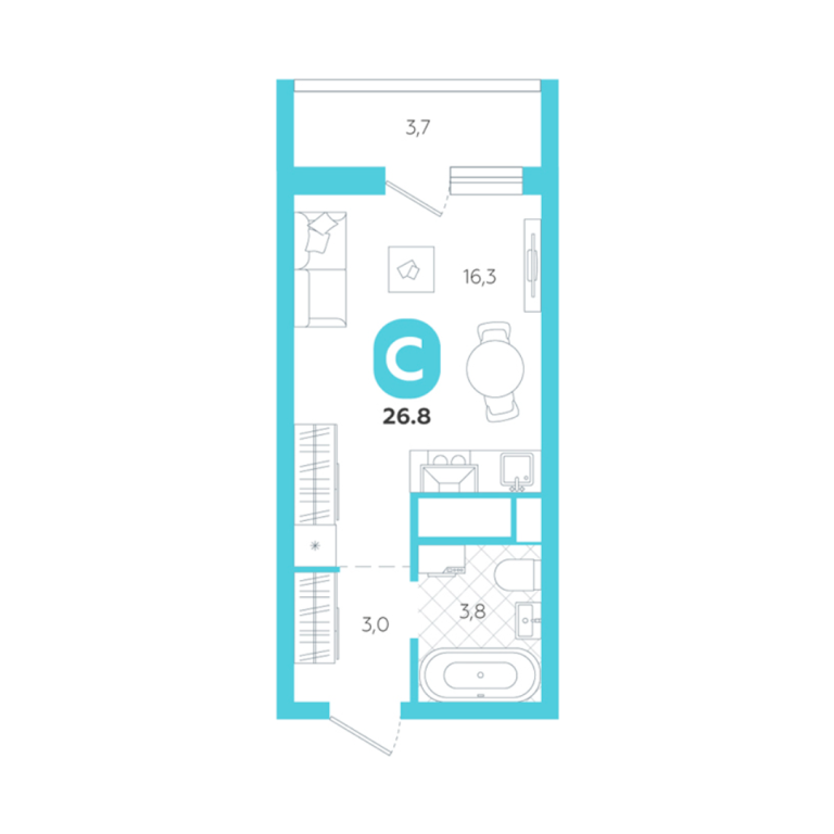 | Общая площадь: | 26.8 м2 |